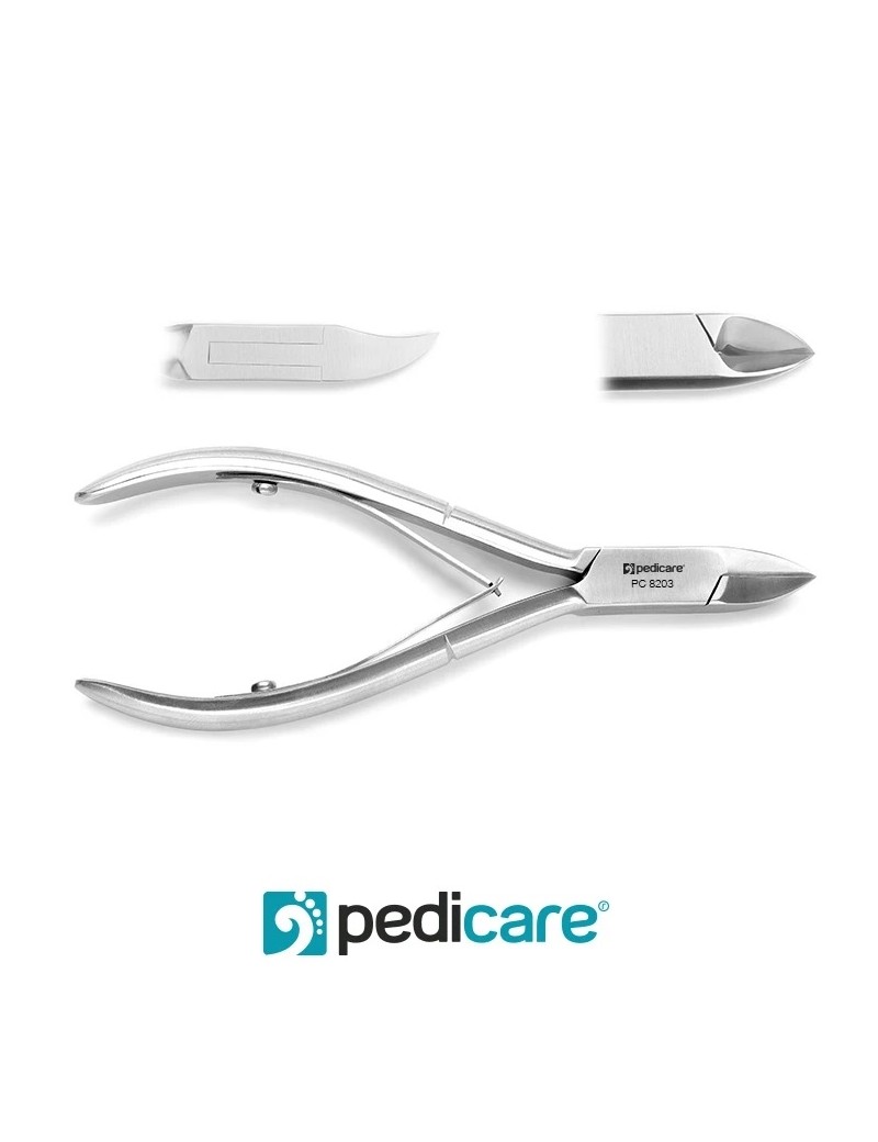 Boczne cęgi PC8203 do skracania paznokci u stóp. Zapewniają doskonałe wyczucie podczas obcinania miękkich, twardych, bardzo twardych, czy grubych paznokci. Odpowiednio wyprofilowane ostrza (lekko wklęsła forma) nadają skracanym paznokciom prawidłowy kształt. Posiadają podwójną sprężynę. Wykonane z nierdzewnej stali chirurgicznej. Są solidne i ostre.