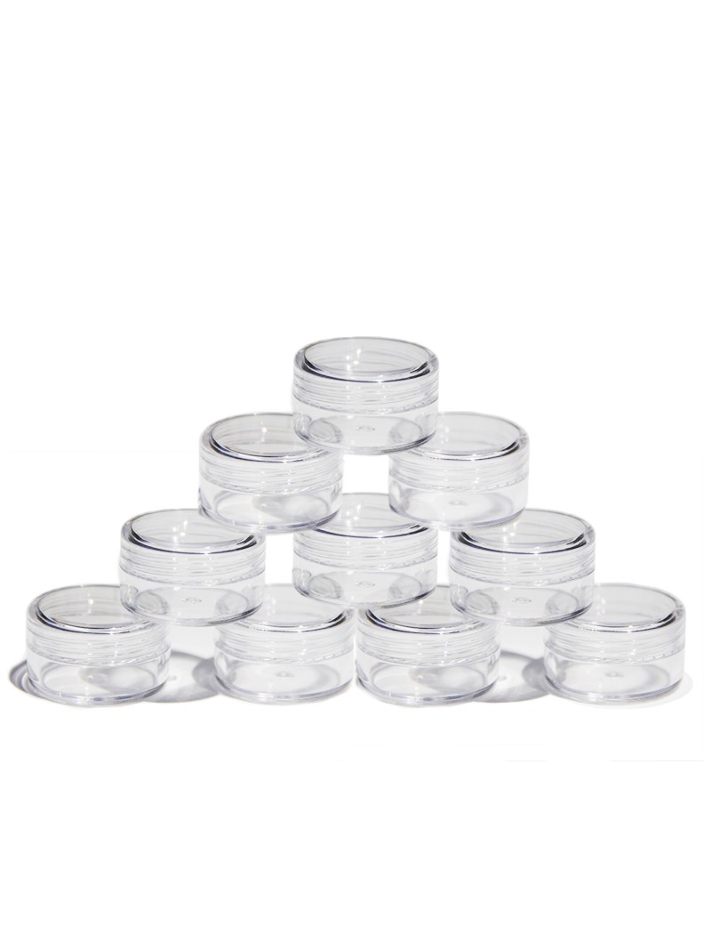 Pojemniczki na ozdoby 3ml - 10szt Małe, wygodne i praktyczne, przeźroczyste zakręcane słoiczki o średnicy 3cm na ozdoby do paznokci (brokat, kawior, cyrkonie itp.). Zapewniają estetyczny sposób przechowywania i pozwalają łatwo uporządkować wszelkiego rodzaju drobiazgi.