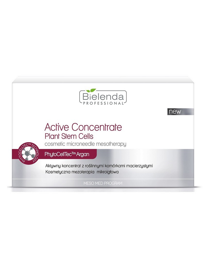 Aktywny koncentrat Bielenda z roślinnymi komórkami macierzystymi najbardziej innowacyjny koncentrat z roślinnymi komórkami macierzystymi, który wchodzi w skład programu Meso Med. Program - Aktywne koncentraty do kosmetycznej mezoterapii mikroigłowej. Przeciwdziała on starzeniu się skóry, a także spłyca blizny potrądzikowe. Niweluje rozstępy, a także jest stosowany w profilaktyce łysienia. Roślinne komórki macierzyste z kiełków Drzewa Arganowego, liści szwajcarskiej oraz róży Alpejskiej zapewnią Tobie specjalistyczną pielęgnację ukierunkowaną na różne rodzaje i potrzeby skóry, długotrwałą regenerację, a także wspomagają procesy odmłodzenia skóry. Koncentrat fantastycznie sprawdzi się w przypadku skóry suchej, odwodnionej, z utratą jędrności i elastyczności, wiotkiej z licznymi zmarszczkami. Zawiera w swoim składzie Phyto Cell Tec ™ Alp Rose , które zwiększają witalność emidermalnych komórek macierzystych, regenerują naskórek przez co wzmacniają funkcje barierowe skóry, dzięki czemu staje się bardziej odporna na działanie niekorzystnych czynników zewnętrznych. Wspomagają naturalne mechanizmy ochronne. Natomiast Phyto Cell Tec ™ Argan oddziaływają na komórki macierzyste znajdujące się u podstawy mieszka włosowego, które mają zdolność do różnicowania w fibroblasty. Tym samym stymulują produkcję kolagenu i elastyny, czyli podstawowych białek budulcowych, które odpowiadają za jędrność i elastyczność skóry. Odmładzają skórę od wewnątrz.