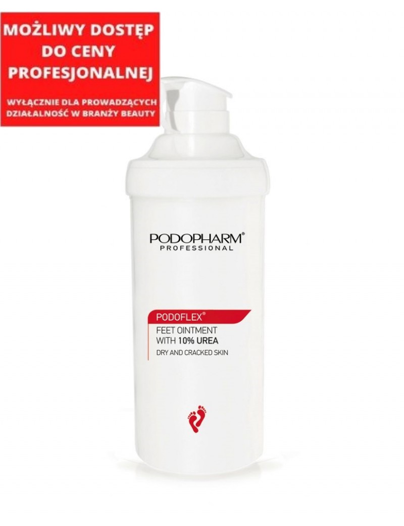 Maść do stóp, z linii Podoflex, przeznaczona jest do pielęgnacji stóp z hiperkeratozą, modzelami, pękaniem naskórka. Stosowana przy zmiękczaniu wałów paznokciowych. Zawiera mocznik (10%) i żel z aloesu, masło shea, lanolinę, argininę, witaminę E i PP, alantoinę, ekstrakt z nostrzyka żółtego oraz olejek herbaciany.