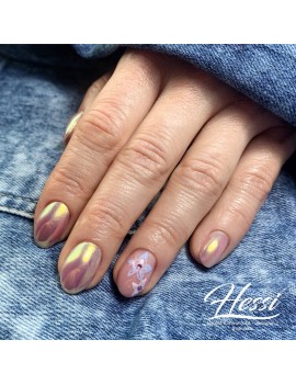Pozwala uzyskać efekt nieregularnej, kolorowej tafli. Flakes effect staje się idealnym dopełnieniem delikatniejszych zdobień. Flakes effect wystarczy podzielić na mniejsze kawałki, nałożyć na dyspersję utwardzonego lakieru hybrydowego i nałożyć top nawierzchniowy beautifully shine lub multi top.