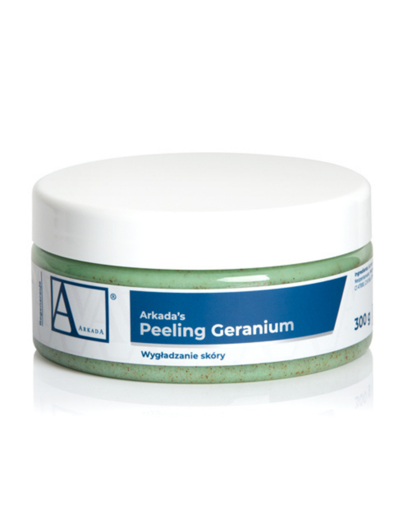 Peeling Geranium AArkada skutecznie oczyszcza i usuwa martwy naskórek opierając swój skład na kryształkach cukru i zmielonych pestkach moreli.
