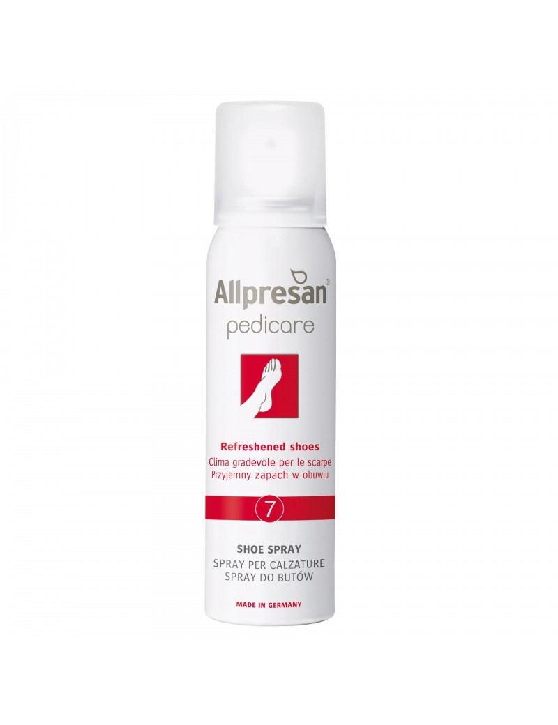 Allpresan Pedicare 7 Spray do butów Oryginalny spray do butów chroni obuwie przed grzybicą, pozostawiając w obuwiu przyjemny i świeży zapach.