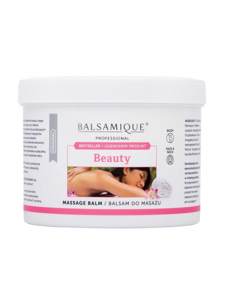 Balsamique® Professional Beauty jest preparatem uniwersalnym, neutralnym dla odczuć pacjentów. Zastosowanie przywraca skórze zdrowy wygląd, czyni ją gładką, pachnącą, odżywioną, elastyczną i przyjemną w dotyku. Sporządzony jest z oleju ze słodkich migdałów oraz wysokiej jakości substancji lipofilowych. Olej ze słodkich migdałów, zawierający fitosterole, lecytynę oraz witaminę E, doskonale regeneruje, odżywia, zmiękcza i wygładza skórę. Ma zdolność do usuwania toksyn, wykazuje działanie anti-ageing, łagodzi podrażnienia, swędzenie, stany zapalne skóry i jest doskonałym tłuszczem do pielęgnacji wysuszonej, łuszczącej się skóry. Preparat wzbogacony jest witaminą E, która chroni skórę przed niekorzystnymi działaniami wolnych rodników, opóźnia procesy starzenia oraz pozytywnie wpływa na ochronne funkcje skóry.