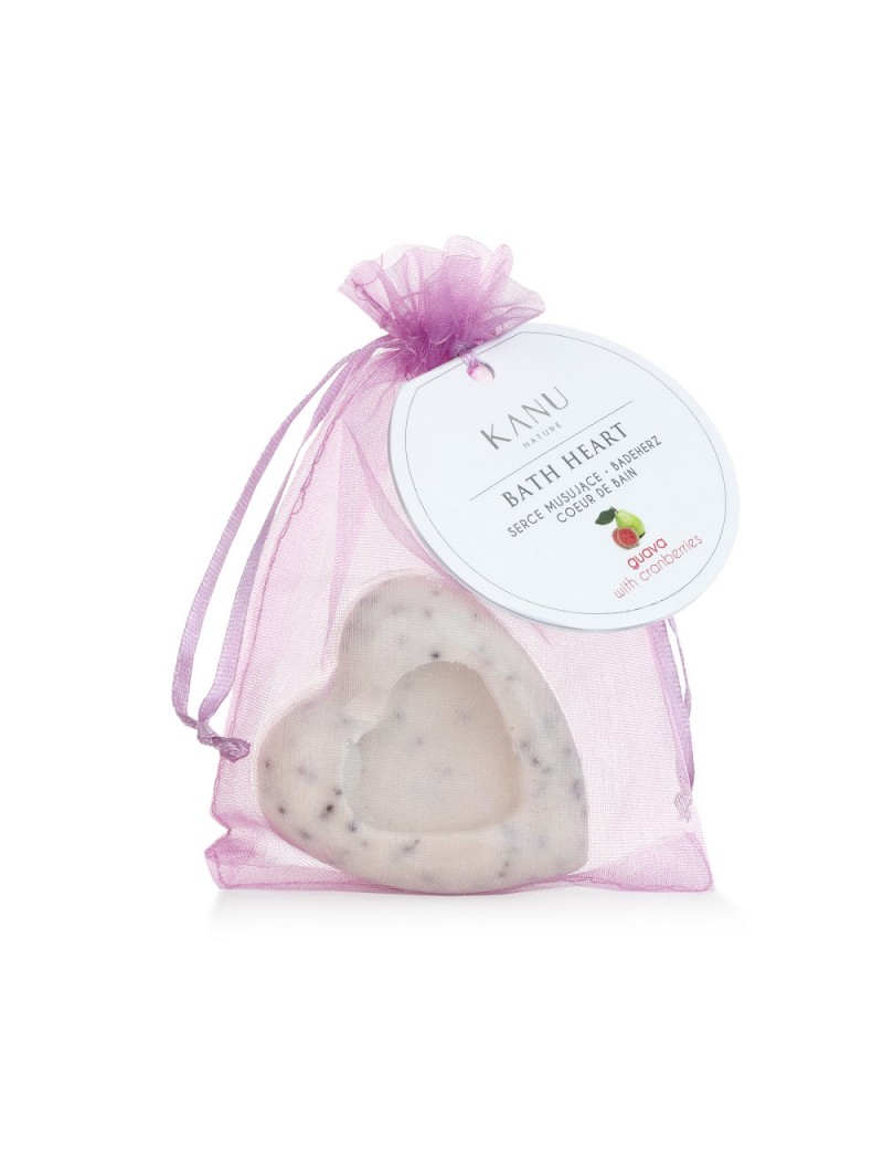 Ręcznie formowane serce do kąpieli o zapachu gujawy z dodatkiem żurawiny to idealny pomysł na domowe SPA! Produkt zawiera masło shea oraz masło kakaowe, które zadbają o odpowiednie nawilżenie skóry podczas kąpieli.