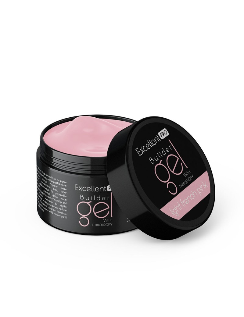 EXCELLENT PRO BUILDER GEL WITH THIXOTROPY CREAMY PINK to żel o delikatnym, mlecznoróżowym odcieniu. Idealnie będzie wyglądał jako podkład pod french oraz baby boomer. Twardy żel, którym wykonasz krótkie, średnie, długie i bardzo długie przedłużenia na szablonie oraz tipsie. Doskonale sprawdzi się także w stylizacjach wykonywanych przy pomocy dual form. Dzięki właściwościom tikotropowym żel świetnie się rozkłada na paznokciu, dając jednocześnie czas na spokojną pracę nim, bez obaw o zalane skórki. Samopoziomująca konsystencja pozwoli na rozłożenie żelu w taki sposób, żeby powierzchnia była gładka i nie wymagała piłowania. Podczas zacisku tunel nie rozpręża się.