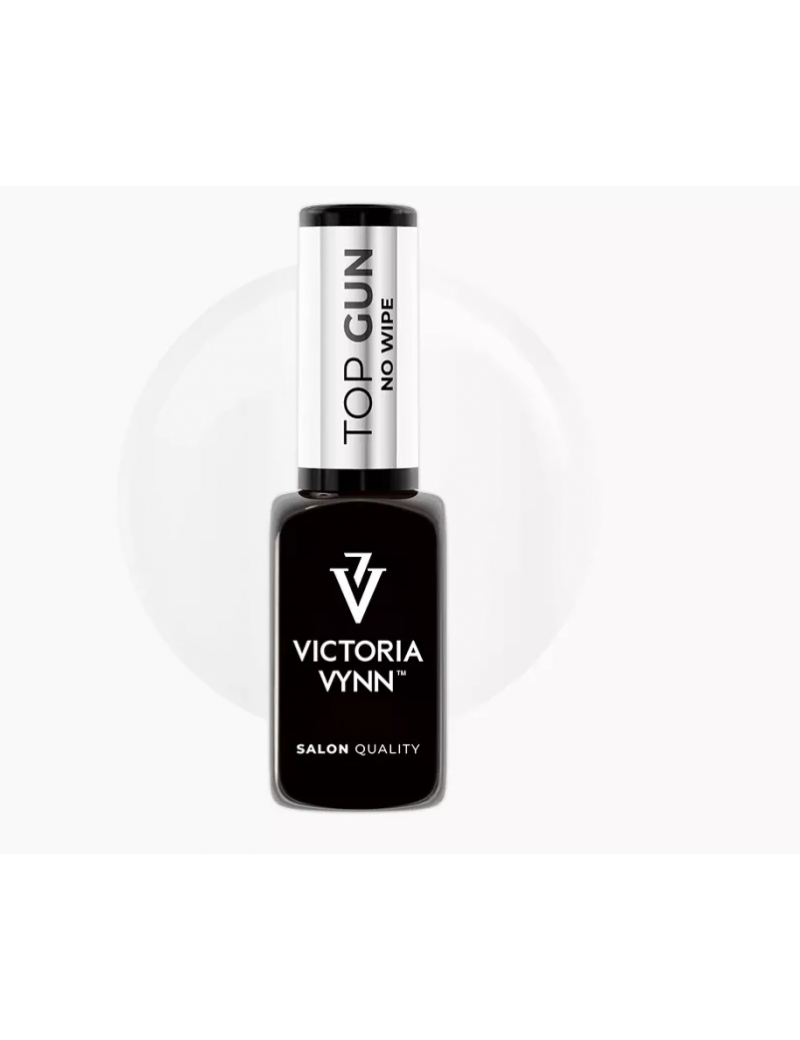 Victoria Vynn GUN No Wipe, 8 mlIdealne wykończenie stylizacji hybrydowej o maksymalnej trwałości i blasku. Ten bezbarwny top hybrydowy bez lepkiej warstwy to broń każdej stylistki. Top coat, który zapewnia 100% pewności lśniącego manicure bez zarysowań. Nie zmienia odcieni ciemnych kolorów hybrydowych. Utwardzany w lampie UV i LED